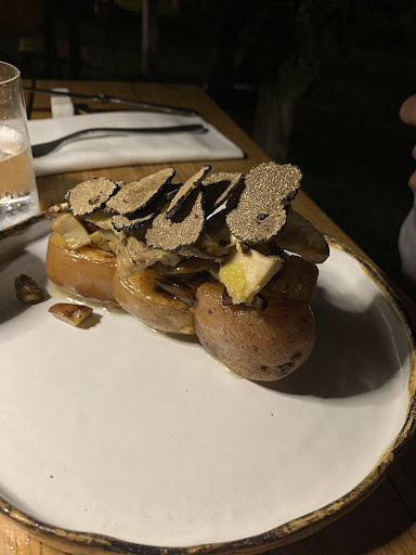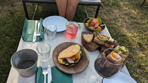 First of all this place is really magical and the aperetivo we enjoyed in an easy and very relaxed atmosphere has been amazing. When we moved to the tables for having dinner the atmosphere and the ambiance were still nice. so far so good, but when we finally received the dishes we were somewhat speechless and confused. Most of the dishes and vegetables were black and completely burnt! so most of the food was inedible. What was not burnt was ok, but the rest was really uneatable. When we paid we told the owners in a gentle way that the apero was very good as well as the wine, but that the dinner was a pure disappointment. The lady at the counter then told as in a very rude way that this is their way of cooking - they even went to Argentina/Patagonia to learn this way of cooking... and that if we do not like it we should not come anymore! Apart of the fact that we are not in Patagonia - good food if veggie or meat looks and tasts different in Tuscany/Maremma and particular Bolgheri! This lady obviously cannot handle any criticism - we also noticed that we were not the only ones complaining about the quality of the food in what they call "restaurant". However, my suggestion is in any case go there for a really nice aperetivo but have dinner at a different location! There are so many really good restaurants...