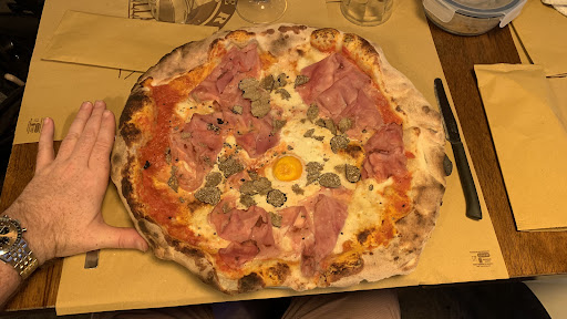 Top-recommendation! The food was great. Pizza is really big, just feels good to have this in front of you. 😄 And also the dough tastes great, especially when you ask for some extra olive oil. 😉 And we also had Tagliatelle with Pistachio-Pesto, which was on point.