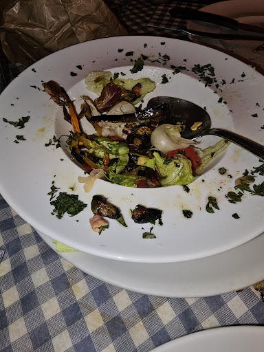 Read moreAbbiamo effettuato una prenotazione per le 21, ma siamo arrivati alle 20.50. Nonostante avessimo ordinato poco dopo esserci seduti, dopo insistenza da parte del personale (il vino abbiamo dovuto sceglierlo con la cameriera al tavolo, non avendo avuto tempo materiale di leggere la carta dei vini) , abbiamo dovuto aspettare ben 45 minuti per l'antipasto, che è giunto solo alle 21.35. Purtroppo, l'insalata di mare era così bruciata che abbiamo dovuto lasciarla quasi intatta (potete vedere la foto). Date le lunghe attese, abbiamo chiesto di accelerare il servizio perché dovevamo essere altrove prima delle 22:30. A quel punto, però, il servizio è diventato troppo rapido: primo e secondo piatto sono stati serviti a distanza di appena 10 minuti, e il secondo piatto è arrivato mentre la mia compagna era ancora al primo. Le cozze pepate erano gustose, fresche e ben preparate, ma purtroppo non possiamo dire lo stesso per il polipo alla griglia, che era anch'esso bruciato come l'antipasto. È un peccato non aver ricevuto nemmeno una semplice scusa da parte del locale, nonostante avessimo espresso le nostre perplessità e avessimo lasciato quasi intatto l'antipasto. Il conto ammontava a 87 euro, che abbiamo pagato senza ricevere alcun gesto come un amaro o una grappa, che avremmo apprezzato. Forse è stata solo una serata sfortunata per il locale, ma ne siamo usciti...