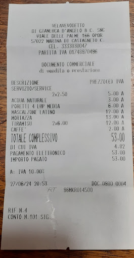 Read more"Meno nn posso farne". ...... Su suggerimento del titolare elenco cosa nn mi è piaciuto della cena. Premetto che abbiamo prenotato un tavolo all'ultimo istante dopo che altri 10 locali tra cecina e Marina di castagneto ci avevano detto che erano pieni. L'unico posto libero era il suo... Già qui forse dovevo chiedermi xchè, ma nn importa, eravamo venuti x una semplice pizza. Primo impatto con il servizio... Chiediamo quale fosse il nostro tavolo e , anziché accompagnarci i al tavolo, la cameriera ci ha indicato il tavolo nella verandina dicendoci..." Tavolo 4 partendo dal fondo a sx"... Bella lì .. Prendiamo 3 pizze e una calamarata... 1 caffè 2 acqua totale 58€ e ci sta siamo al mare prezzi così ne abbiamo visti molti altri e siamo abituati quindi nn discuto. Arrivano le 3 pizze 2 margherite e 1 speciale... Sottili dure e cn ingredienti nn di altissimo livello, sopra le margherite c'era dell'origano che sembrava secco/ tostato e non il basilico... Calamarata non ho capito se erano ingredienti congelati no,ma semplicemente xchè non ho letto io sul menù... L'ho cmq assaggiata e a mio modesto parere erano surgelati.. ho pagato ho ringraziato e me ne sono andato. Nella sua risposta ho visto l'arroganza di chi si crede chef stellato, ma nessun problema nn si preoccupi che nn ripasso. Probabilmente sono abituato a altri tipi di ristoranti e di ristoratori. Io continuerò a fare recensioni anche alle Conad, lei continuo pure a prendere i suoi ingredienti al discount, senza offesa x il discount,.. La Conad ha sicuramente materie prime fresche ... Buon proseguimento di stagione. E grazie x la...