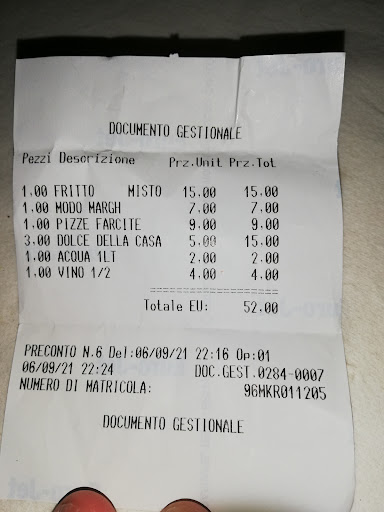 Incuriosito dalle recensioni positive ci siamo andati per cena una domenica sera. Il locale si trova in una zona periferica del centro e fa anche servizio takeaway. Noi abbiamo ordinato 3 schiacciate ( 2farcite e una classica) acqua una bibita con due caffè.Niente da dire sul servizio ma il conto é stato più altro del previsto. Ci é stato addebitato il costo del vino che non abbiamo ordinato. Fatto notare al cameriere ha tolto il costo del vino ma mi é stato addebito il costo di una bottiglia di acqua da grande invece da una Piccola e sia il costo della schiacciata al prosciutto e della bibita aumentata rispetto al menu. Spero sia...