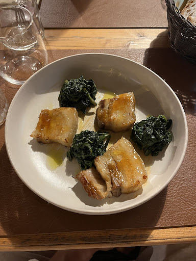 Good food but very poor value. We had dinner but really only suitable for those on diets! The glass of wine was the smallest we've ever been served and were 6E each. For starters the 4 stuffed courgette flowers were nice but small. We then had the stuffed anchovies (14E). There were six tiny anchovies on the plate. They tasted nice but hardly a main course! The glazed ribs (15E) were 4 luke warm and small with a spoon or two of diced potatoes. All in all we left hungry, very disappointed...