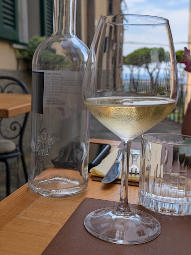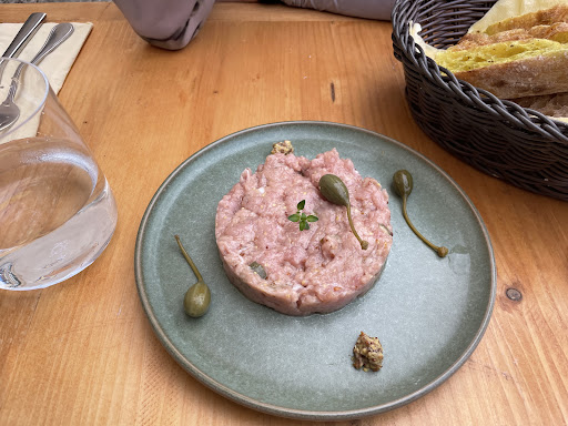 Read moreVisitato la cena del 19 luglio, questo piccolo bistrò-wine bar è stato una sorpresa. La location vale già la visita, ma questo credo sia un’ovvietà: siamo nella piazzetta principale di Castagneto Carducci. Abbiamo cenato all’aperto, sotto comodi ombrelloni in piazza. La sala di accoglienza all’interno è curata e accogliente, non ho visitato le altre sale. Il menù offre tradizionali accompagnamenti da aperitivo - principalmente taglieri di salumi e formaggi - con piatti della tradizione rivisitati ed evoluti. In carta tartare con i cucunci, polpette di baccalà, paninetto al lampredotto e qualche piatto vegetariano come antipasto, malatagliati alla gallinella, maccheroncini al coniglio e ramen come primo, brasato di agnello, pancia di maiale e carpaccio di gambero rosa tra i secondi. Per una volta non abbiamo spaziato nel menù perché attratti dal paninetto al lampredotto e dal brasato di agnello. Entrambi ben eseguiti e molto interessanti, abbiamo apprezzato la scelta, il tutto accompagnato da una bottiglia di Mediterraneo di Camillo (ciliegiolo in blend con grenache e carignan), azzeccata per abbinamento e qualità del prodotto. Sorpresa finale, gelato al latte di capra erborinato di Paterno, una sorpresa. Un bleu in forma di gelato! Servizio puntuale e attento, le due ragazze si n sala hanno risposto alle nostre richieste con gentilezza e competenza. Due antipasti, tre portate, due gelati, una bottiglia di Mediterraneo e tre caffè, amari...