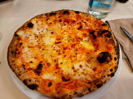 Premetto che siamo andati a mangiare in questo ristorante il mezzogiorno di ferragosto. Ho ordinato una pizza, che alla fine non era neanche tanto male, era solo un po’ secca, ma quelle delle altre persone al mio tavolo erano bruciate sotto e anche di fianco. Io non dico che non deve capitare mai che una pizza esca bruciata, ma possibile che con tutto il personale che c’era nessuno ha avuto l’accortezza di non servire delle pizze del genere? Vabbe, ci passiamo sopra dai… Se non fosse che quando tutti avevano finito di mangiare, e io stavo finendo di mangiare la mia pizza, dato che sono stata servita per ultima, passa la cameriera e mi ritira il piatto con ancora mezza fetta. A parte che, lavorando nella ristorazione anche io, a me hanno insegnato che prima si deve chiedere il permesso per poter ritirare un piatto che è ancora pieno…vabbe Ci passiamo sopra… Per concludere in bellezza, i camerieri per sparecchiare il tavolo dietro, continuavano a prendere dentro la mia sedia, che è normale alla fine, può capitare, ma almeno chiedere scusa alla quinta volta che ti capita? In generale secondo me manca un po’ di attenzione al cliente per le cose più banali...