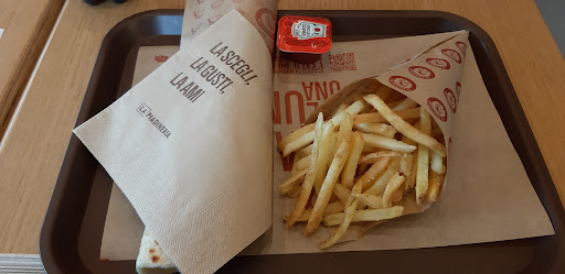 -1 ci danno la possibilità di ordinare self service: c'è solo 1 postazione. Poi, non mi hanno dato nemmeno un vassoio,ne ho dovuto prendere uno usato. In più non si capisce bene chi fa cosa: c'è un cassiere,un cuoco,un addetto alla pulizia? Il McDonald's a fianco offre cibo spazzatura,ma, almeno,questi ruoli sono definiti. Non si capisce bene COSA offre, esattamente la casa, rispetto a un fast food.