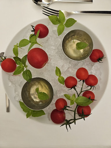 La selezione delle bevande ha accompagnato magnificamente il percorso: dalle vivaci bollicine iniziali del Fiano Dryas, passando per l'eccellente vino Fiano Lunarossa Quartara che ha esaltato la cena, fino alle note dolci e avvolgenti del Symphonie de Sauternes. E per concludere, un tocco tanto inaspettato quanto gradito: una fumante e confortante tazza di orzo tedesco preparato in moka, un gesto che unisce l'alta ristorazione al calore di casa.