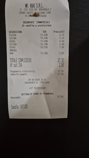 Ho ordinato per la prima volta da Mr. Kuai a Castel dâAzzano utilizzando Just Eat, e devo dire che lâesperienza è stata davvero impeccabile dallâinizio alla fine. La consegna è stata rapidissima e puntuale, il cibo è arrivato ancora caldo, ben confezionato e perfettamente sigillato.