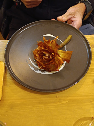 Read moreCena in coppia. Siamo ritornati dopo 2 anni perchè l’ultima volta ci ha colpito molto il cibo, la location e il servizio tanto da mangiarci due giorni di seguito (pranzo e cena). Nulla togliere alla location e al servizio (sempre molto gentili e sempre con il sorriso), questa volta siamo rimasti un pó delusi dalla cucina, sembra che sia cambiato qualcosa. Abbiamo ordinato un sandwich di pulled di cervo, squisito!!! 😍 A seguire una chitarra al ragù di cinghiale e un risotto al topinambur: il ragù ottimo ma la chitarra ahimè me l’aspettavo diversa, non voglio pronunciarmi tanto ma non sembrava fatta in casa.. Per il risotto sembrava un risotto base parmigiano e del topinambur non c’era traccia solo delle chips adagiate sul riso. Mi aspettavo un risotto mantecato con una crema di topinambur. A seguire l’anatra! Accompagnata da zucca e cavolo nero..un po troppo avanti di cottura per i miei gusti. Il tutto accompagnato da un Primitivo di Manduria Mezzanotte, buon vino ! Un bis l’avrei fatto volentieri! Ci teniamo molto a questo locale e ci ritorneremo, perchè speriamo che sia stato solo un incidente di percorso e che la prossima volta soddisfi il nostro palato...