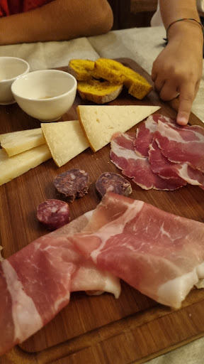 Read moreIn quattro abbiamo ordinato un Tagliere Vittoria, tre Tagliatelle ai funghi porcini e tartufo, un Raviolo mantecato al baccalà, e un giro di arrosticini (ne avremmo mangiati anche due 😌). Giuste quantità, senza esagerare. Il tagliere ci ha sorpresi particolarmente con la loro selezione di salumi e formaggi km0. Per dirne una, davvero sororendente la salsiccia di cervo, ma poi tutto buono. Da provare e farsi spiegare. Le Tagliatelle hanno un sapore delicato e i funghi dal gusto deciso, appena accennato il tartufo. I Ravioli molto buoni, adagiati su una crema di baccalà gustosa. Gli arrosticini sono tagliati al coltello, non industriali, sapore meraviglioso e anche la cottura. Fantastici. Tutta l'esperienza molto piacevole, locale tranquillo, ben riscaldato, buon servizio, personale cordiale. Torneremo...
