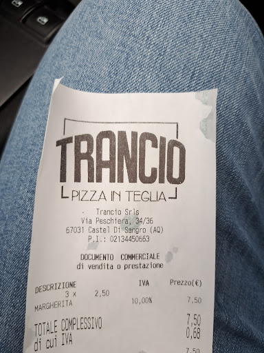 Read moreUn ottimo posto dove poter gustare della pizza al taglio, nel pieno centro del paese. Il personale è composto da ragazzi gentili e competenti, e la pizza è davvero ottima. Delle pizze che sono possibili reperire al bancone, a mio avviso il pezzo con salsiccia e patate è il migliore che propongono, con la pizza morbida, saporita e cotta a dovere. L'unica pecca sono i prezzi un po' alti: un pezzo di margherita costa 2.5 euro, mentre quelle farcite 3 euro. A prescindere da ciò, però, il locale in termini di qualità è assolutamente...