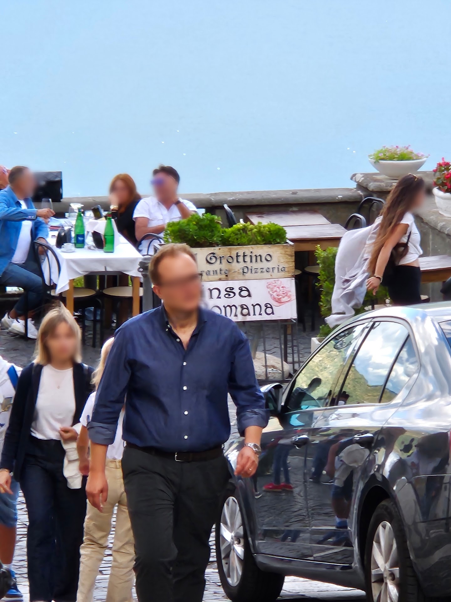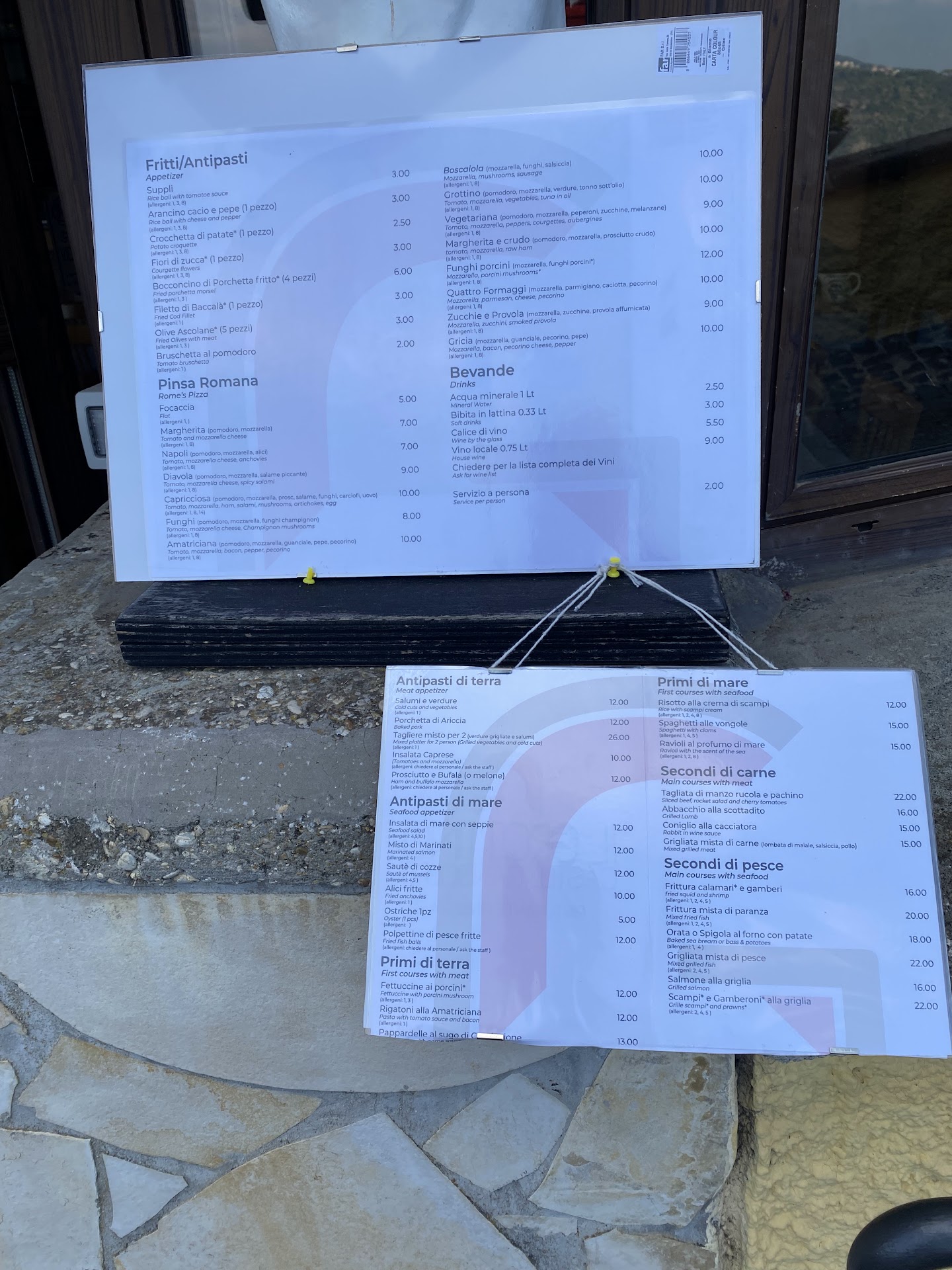 When we first approached, a rude and aggressive waiter shoved at us a plastic thimble of pink so-called Aperol spritz. We sat down anyway as we were hungry and tired.