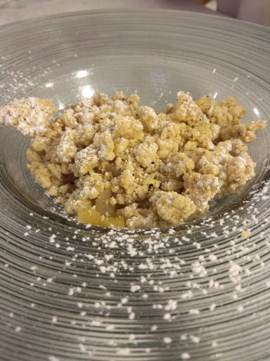 Read moreQuesto è uno di quei posti che ti convincono via via sempre di più mentre passano i minuti. Esternamente ti dà quasi l'impressione di essere in un'altra epoca, medioevale direi, ti senti in un castello. La struttura ricoperta di rampicanti verdi e pietre, il frantoio vero in mezzo a una delle sale, vetrine e arredamenti classici, sembra tutto molto fiabesco. Ma la sala esterna, ti affascina ancora di più, arredamento moderno, luci, tavoli perfettamente preparati con fiori freschi bianchi, candele cuscini e un'amaca al centro del giardino. Molto romantico! Il personale è davvero cordiale, preparato e veloce. Il menù offre prodotti del territorio molto classici, ma fatti come Dio comanda. Una cucina schietta, sincera, il fritto asciutto, saporito, giusto! L'agnello gustoso, cotto alla perfezione, ne avrei mangiato a chili, le patate tagliate a mano sapevano di casa, di cucina contadina. Ingredienti trattati in modo tradizionale, sorprendono per la loro semplicità. Anche I dolci non deludono, il crumble di mele appagante, un'ottimo fine pasto che chiude una cena perfetta. Difficile oggi riuscire a convincermi completamente, eppure loro ci sono...