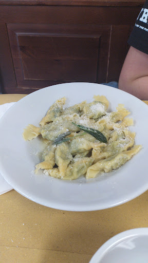 Read moreTrattoria trovata qui su Google Maps al volo, uscendo dall'autostrada. Coi Ronin adoriamo le trattorie di questo tipo, a conduzione iper-familiare. Cibo fatto col cuore e con la passione di un tempo. Locale alla vecchia, ma trattamento super. Sandro si è mangiato dei ravioli in brodo che a suo dire erano ottimi, però boh, io ste robe col brodo non le mangio, mi sanno di cibo geriatrico. Io e Robi abbiamo preso i ravioli burro e salvia che ciao, ci hanno svoltato. Bruno ha preso il coniglio e io mi sono sentito mancare perché i conigli mi piacciono vivi. Ma oh, non è che possiamo avere tutti gli stessi gusti. Poi oh, contento lui, contenti tutti. Avanzo cipolla e aglio dalla cuoca che ci ha fatto molto ridere e ci ha detto che eravamo un quartetto dell'altra sponda ahahah (no, non è...