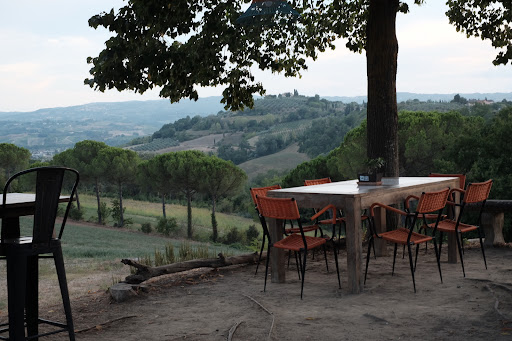 Read moreA small gem you should not miss. You can go there for an aperitivo or for an informal dinner: there is a good wine list (and the waiter will help you choose the right one for you), a lot of cocktails (also originally created drinks) and a choice between taglieri, crostoni, panini and three home made dishes that vary regularly. All the food is well cooked and tasty. But what makes the place is the atmosphere; not only the panoramic view on the hills and the sunset (which is amazing) but also the lightning, the music, the forniture, the flooring (that is just the dirt): everithing is cozy...