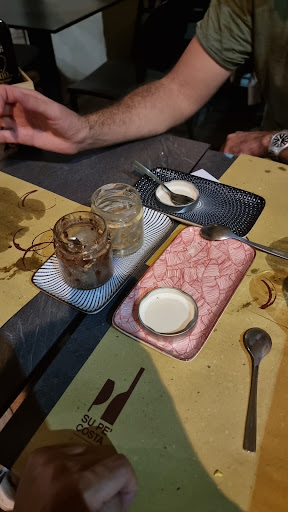 Read moreUn local muy agradable, tranquilo y con buena música ambiental a un volumen perfecto. Las camareras han sido muy amables, nos han buscado incluso una persona que estaba en el local que nos pudiera traducir unas dudas que teníamos sobre la celebración del fin de año por aquí. La comida exquisita, especialmente la brocheta (tipo tosta) de trufa, tocino y queso burrata. El vino que nos recomendó, seco como le pedí, estaba muy bueno. No se...