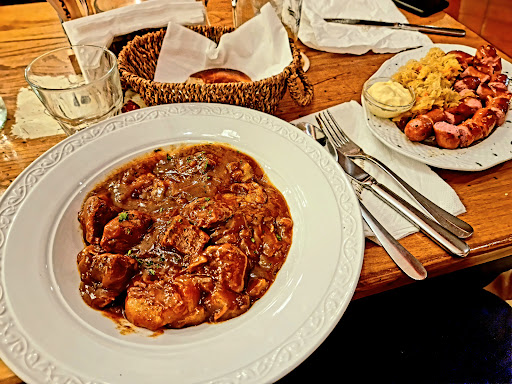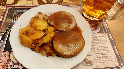 Read moreHo una zia che mi porta qui a mangiare perché siamo amanti della Germania (il mio bisnonno era tedesco) e ci piace molto il cibo tipico. Ambiente tipico bavarese molto carino e curato, le cameriere sono molto gentili e disponibili e il proprietario è molto simpatico. Io sono andata, l'ultima volta, nei giorni dell' Oktoberfest dove ho trovato i menù dedicati con in aggiunta la birra nel boccale da 1 litro (che porti via). Il mio menù prevedeva il maialino con salsa di birra (una bontà, si scioglieva in bocca) con patate cotte arrosto con cipolla e pancetta (quanto erano buone!). Il mio compagno ha preso il menù con i wurstel di vario tipo (buonissimi, si sente proprio che non sono di qui) e due tipologie di crauti. Per finire un ottima torta foresta nera per me e una sacher squisita per il mio compagno. Anche gli amari sono molto buoni, soprattutto quelli con le erbe. Consiglio vivamente per chi ha nostalgia della Germania e dei suoi ottimi e particolari piatti. PS: la notte e il giorno dopo non sono stata male a causa della pesantezza del cibo o della litrata di birra 😅 ero proprio un fiore! 🤩 Ancora più...