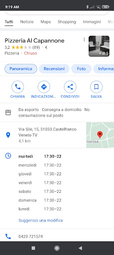 Ieri sera, ore 21.20, chiamo un domicilio dell'ultimo minuto. Mi risponde la signora, sempre maleducatissima, dicendomi che non possono farmi le pizze perché stanno chiudendo. Dopo un po' accetta di prepararmele però devo andare io a ritirarle perché non ha più fattorini. Io dico meravigliata che su internet c'è scritto che chiudono alle 22 (allego screenshot). La signora con il tono che ormai è risaputo che la contraddistingue, saccente, maleducato, altezzoso e arrogante, mi risponde che non è vero e che a questo punto le pizze non me le...