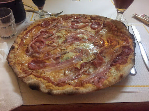 Read moreFermati per caso al ritorno di una gita. Pizzeria. Si nota subito dalla facciata che è un luogo vissuto e un pò datato. Meno si nota il locale la sera che risulta privo di illuminazione. Nemmeno avvicinandosi all'ingresso non si capisce che tipo di locale sia al punto che abbiamo dovuto chiedere che tipo di cosa facessero da mangiare. Il suo interno è rimasto come 30 anni fa, le molte panche di legno massiccio e i molti oggetti accumulati e appesi al muro come foto insegne e cimeli risalenti a quei periodi profumano di tempi andati. Tutto fermo agli anni 90 come l'offerta dei dolci che si limita alla sola scelta di tartufo bianco e nero. In pratica sarebbe da prendere in mano e dare una bella ristrutturata. Di positivo c'è la simpatia della proprietaria ed i prezzi tuttosommato onesti....
