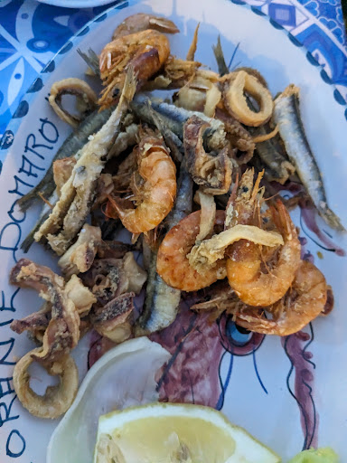 Read moreDomarò è un locale presente a San Marco, nella piazza principale del paese affaccia questo locale a metà tra la trattoria classica e il moderno, esteticamente non è nulla di eccezionale ma comunque nella norma. Ci sediamo in 4 verso le 21:30, con il locale mediamente pieno, e partiamo subito male con un menù scarnissimo, (magari fosse stato un menù normale, era un pezzo di carta sgualcito.) Un cameriere piuttosto frettoloso imbandisce la tavola, mentre ci apprestiamo a ordinare. Una volta ordinate le pietanze scelte inizia una lunga attesa, l'antipasto alla ''cilentana'' viene servito dopo 20-25 minuti, per UNA persona, non per 4 come sarebbe normale visto che le persone sedute a tavola erano appunto 4. Antipasto pessimo, l'unica mozzarellina presente era una di quelle surgelate, il resto a malapena sufficiente. Dopo l'antipasto ulteriori 40 minuti di attesa per ricevere solo 2 dei 4 piatti ordinati, abbiamo dovuto mangiare in 2 mentre gli altri commensali attendevano, gli altri piatti sono arrivati quando ormai avevamo finito di mangiare, rovinando completamente l'esperienza che ci si aspetta quando si va a cena fuori insieme. Per giunta la cameriera portando le due fritture di pesce arrivate dopo un ora, invece di scusarsi per l'attesa assurda si.è anche sentita di fare una bella battuta ridicola sostenendo che la porzione fosse ''molto abbondante'' quando non lo era affatto, per giunta i gamberi e gli anellini di pesce erano SURGELATI, in un posto di mare come San Marco è veramente il colmo, vergognoso. Unica nota positiva gli scialatielli, che erano veramente buoni. In conclusione abbiamo pagato 82 euro per 4 piatti di cui 2 schifosi e arrivati anche dopo un ora dall'antipasto, il tutto abbinato alla scortesia della cameriera che ha dato il tocco finale a un posto veramente pessimo, sopratutto considerando che in una trattoria a 500 metri dal mare si presume che sia presente almeno la freschezza del pesce. Se volete mangiare bene vi consiglio di arrivare al porticciolo dove è pieno di posti molto migliori dove si spende anche meno, questo è uno di quei locali da evitare in qualsiasi caso, scortesia e poca professionalità sono di casa, il peggio del peggio. Infine aggiungo anche che solo due camerieri su 4 presenti indossavano le mascherine quando servivano i piatti, gli altri erano sguarniti completamente, inoltre all'ingresso non hanno nemmeno misurato la temperatura, quindi alla poca professionalità, al pessimo cibo, e alla pessima esperienza si aggiunge anche la mancanza del rispetto delle normative attualmente vigenti, mettendo dunque i commensali a rischio....