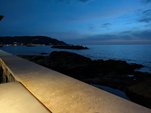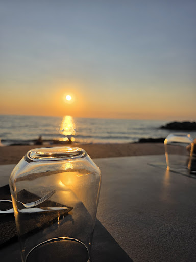 This place was hilarious We thought we were going to have steak so we're allowed at the prime tables overlooking the sea Once we were advised that the state came in a minimum quantity of 1 kg, we decided on pizza and got asked to move back to the tables closer to the restaurant! This wouldn't have been quite so farcical if there have been anyone else sitting outside... There wasn't!!!! Ho - hey! Having said that, the pizza was delicious and the wine was very acceptable However, they may be need to rethink their seating policy, especially late in the season and late at night when the sun is set and you can't even see...