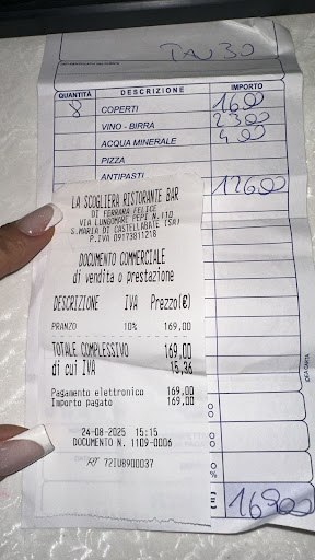 Read moreLa Scogliera is hands down the best seafood restaurant in town, a true gem nestled right by the water. Dining here feels like an enchanting experience as you’re literally eating on the sea, with waves gently lapping around you. The fish is not only incredibly fresh but prepared to perfection, bursting with flavors that celebrate the region’s culinary heritage. We loved it so much that we returned twice, once for dinner and once for lunch! The owner, Felice, is warm and welcoming, and he graciously offered us limoncello or amaro to cap off each meal. This place is a must-visit, and we can’t wait...