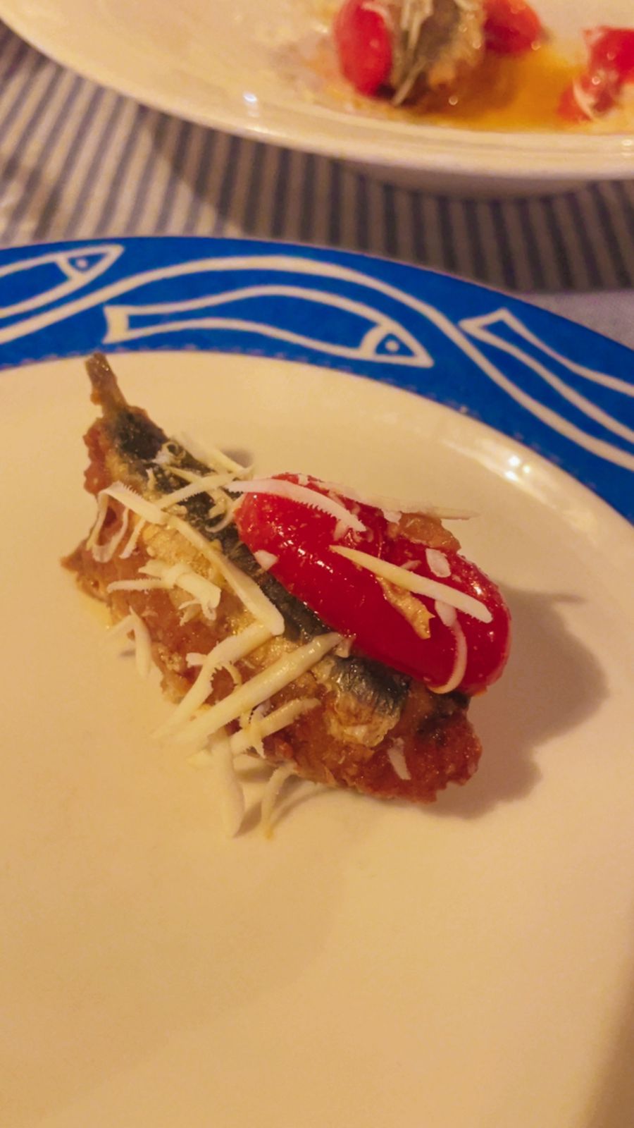 About food, aperitifs: flavorish octopus salad and grilled octopus with a white sauce, never ate an octopus that delicious, crusty and soft inside with abnormal texture. Scallops with a green sauce, just wow. Main courses: red mullet, grouper and linguini with raw scampi and lemon pesto, all phenomenal, wow. Wine was really well selected by the boss. And something sweet at the end, the symbol of Italy, handmade lemon sorbet stuffed with lemon skin, bellissimo finale.