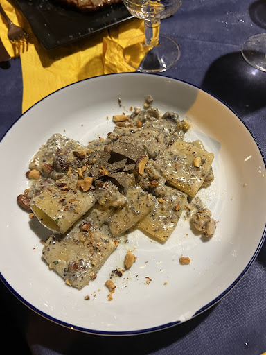 Food wise we started with the one and only caponata and a special baked cheese. We follow up with fried cod and a tomato nut pasta with raisins. Both servings were generous and super tasty. The wine list is well served, tho we went just for a glass of a local red wine.