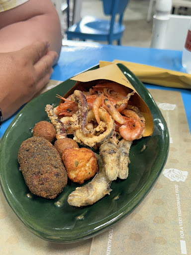 Read moreTavolini in veranda vista porto. Veniamo accolti da Cristian che ci spiega subito dove siamo: locale di pescatori che cucinano di giorno in giorno in base al pescato svariati fuori menù (più tutto il menù fisso, abbastanza breve, benissimo: sintomo di pesce fresco). Il servizio è "casalingo" e l'atmosfera è subito quella. I ragazzi ti mettono subito a tuo agio e trasudano genuina ospitalità. L'ambiente è di conseguenza: curato ma rustico. Insomma, se cercate un posto "finto alla mano" o un posto "di livello", con lo chef, i camerieri incravattati, basta guardarsi un po' intorno e Castellammare offre ampia scelta. La Varcuzza invece è un posto unico, per le persone che lo conducono prima di tutto, per l'ambiente realmente verace (a me personalmente più congeniale), per i prezzi più che onesti e ultimo, ma non meno importante, per il pesce, di cui non ho ancora parlato.