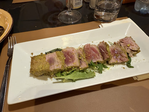 The starters were promising — well-prepared and genuinely enjoyable. However, things quickly went downhill. The main courses took more than 70 minutes to arrive, which is far too long. When they finally did, the disappointment only deepened. The tuna with pistachios, in particular, was underwhelming — simply seared with a pistachio crust, lacking finesse or depth of flavor. It was, regrettably, among the most tasteless tuna dishes I’ve ever had.