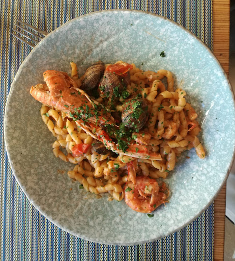 The lobster pasta was very greasy, and they left most of the lobster on my plate, which I found rather unappetizing. The couscous with fish had a boring and bland taste, and the serving size was way too big, enough to fully feed two people. The fish was simply fillets of fish grilled, nothing else—no special seasoning or sauce, except for half a lemon for the swordfish and a few slices of truffles for the tuna. Very boring and bland, in my opinion.