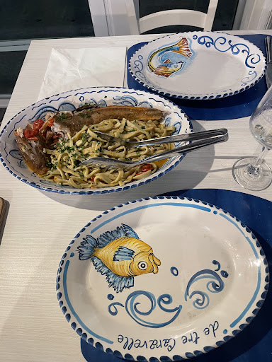 Read moreThe manager Nadia took great care of us and guided us thought through their menu and the daily fish 🐠 the restaurant has seats outside on a raised patio overlooking the sea (but from the other side of the road) and inside with air conditioning. It’s furniture is fish-man style so you can imagine you’re inside a boat 🚤 they served a free hors d’oeuvre which is seaweed fried dough and then we had an amazing seabass Parmesan and a potato and octopus salad to start. Mains were spaghetti with clams, which are cooked to perfection,apparently simple but hard to master recipe, grilled seabass, scialatielli pasta with seafood and paccheri pasta with mussels and potatoes. We ended on a sweet note with a typical dessert, Delizia al limone and a lemon sherbet served in a lemon shell! Then Nadia served free limoncello and annourk apple liquor to die for! Prices were very reasonable and we chatted and laughed with Nadia who is an excellent and smart host! Super recommended! Love from the Italian family and the...