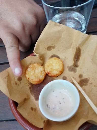 Alla fine abbiamo preso le due birre con il coupon e un piatto di mini Rosti che si è rivelato una vera presa in giro: 10 piccoli pezzi tondi di circa 2 cm, fritti (quando i rosti non si friggerebbero mai) e, per giunta, non erano nemmeno rosti fatti in casa, ma semplici crocchette di patate surgelate. Tutto questo a 8 euro, cioè 80 centesimi a pezzo, un prezzo scandaloso per una qualità così scadente.