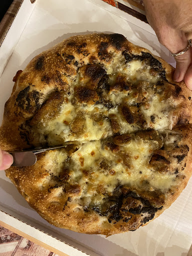 Read moreHo molto apprezzato la pasta della pizza. Deve piacere la pizza a bordo alto. Croccante il fondo, morbida e soffice all'interno. Le dimensioni sono inusuali: 24 cm (viene cotta in teglie di quelle dimensioni); quindi non troppo grande, ma comunque sufficiente. È soprattutto una pizzeria da asporto, ma ci può fermare a mangiare (ca 6 posti...