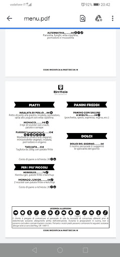 Read morePer bere "l'ultimo" post cena di compleanno, abbiamo deciso di fermarci in questo birrificio, il quale si raggiunge dalla strada principale tramite una stradina sterrata tra gli alberi. Il parcheggio è molto ampio, adorno di lucine da giardino che io personalmente amo molto in ogni contesto. Si presenta con molti posti a sedere sia all'esterno che all'interno, dove è stato scelto un arredamento che vuole far risaltare l'orgoglio del luogo verso la produzione della birra proposta, rigorosamente artigianale e NON industriale, come specificato dal locale stesso. Birreria che sa un po' rock, un po' biker, propone una buona scelta di birre, né troppe né poche, con descrizione di ciascuna circa il tipo, la gradazione, ecc., posta a parete in bella vista. Siamo stati serviti da una ragazza cordiale e simpatica, che ha presto tempestivamente l'ordine e ci ha serviti in tempi record. Vero che siamo arrivati in orario inoltrato dove forse la ressa era passata, ma è sempre bello ci sia comunque attenzione al cliente! Non abbiamo ordinato cibo perché appunto avevamo appena cenato ma ho comunque dato un'occhiata al menù, che proponeva varie scelte tra fritti, panini caldi e freddi, bruschette, secondi piatti, anche piatti per bambini e gluten free. Insomma, scelta ce n'era e sembrava anche invitante, sicuramente da provare in una seconda occasione. Ci siamo fermati relativamente poco ma il posto ci è piaciuto, speriamo ricapiti occasione per...
