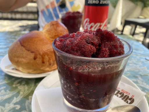 A treasure of a place in Castelmola. We started with a lazy day in Catania and left late for Taormina. Arriving to the stayion we saw Castelmolo perched on a small mountain and got transfers to take the harrowing bus ride up. We only had 30 minutes to experience by then and were recommended a popular bar, arrived there then walked out. We saw this place when we got off the bus in the Piazza and out of all the appeal of the town and its churches we returned to Antico Caffé. This place, the gentleness and joy of the staff, the desserts (pistachio cake and gelato (not enough time to order food), and the almond wine (we ordered one glass but they gave us another), mixed with the view, all cascaded together into the highlight of our day. They were marketing "Il Blandanino", their almond wine, which was created by Don Vincenzo Blandano, the first and historic restauranteur of the small village in 1907, and it was perfect with the desserts. While we were rushing to the bus, they even gave us small cups of granita to sample. The experience with them was short and extraordinary - highly recommended after a tour...
