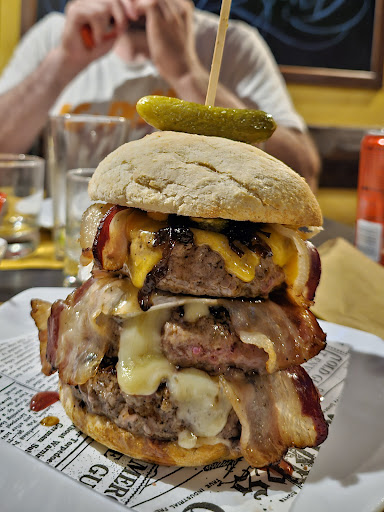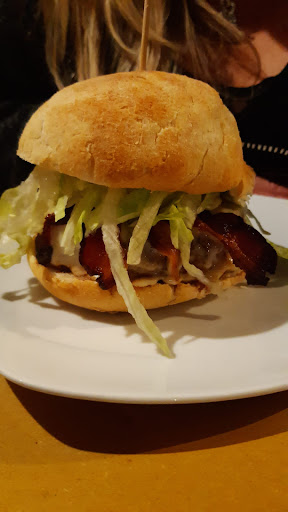 Read moreLocale molto caratteristico stile irlandese con ampio parcheggio a pochissimi metri. Accogliente e pulito sembra davvero di respirare aria d'Irlanda. Interno non grandissimo ma i tavoli erano distanziati sufficientemente. Ho cenato con la mia famiglia il 26 aprile, previo prenotazione...che consiglio di fare. Appena entrati siamo stati accolti dal simpatico propietario che ci ha fatto subito mettere a nostro agio chiedendoci anche se il volume del televisore ci desse fastidio. Il locale ha due televisori, dove vengono trasmesse quasi esclusivamente partite di calcio ma per nulla fastidiosi soprattutto a chi, come me, il calcio non piace. Servono un'infinità di birre, alla spina e anche in bottiglia, tutte ricercate e per tutti i palati...c'è davvero l'imbarazzo della scelta. Rosticeria varia e di qualità ma il pezzo forte sono gli hamburger, con carne di alta qualità e abbinamenti di salse, verdure e formaggi non fatti a caso ma ricercati per valorizzare la carne...oltretutto cotta alla perfezione. Non voglio esagerare ma ad ogni morso le papille gustative facevano la standing ovation. Dolce alla fine...consiglio la cheesecake al pistacchio...sublime. I prezzi sono assolutamente nella norma soprattutto per la qualità dei prodotti ma anche per la location. Che dire, torneremo sicuramente in questo locale ogni qual volta vorremmo gustare degli ottimi hamburger e non...