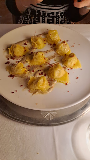 Arriva il simpaticissimo, credo capo sala o meglio il cameriere che prende le comande, avevamo il menu degustazione, che tutto sembrava tranne che un menu degno di essere chiamato cosi. chiedo la sostituzione di alcune pietanze, normalmente il menu degustazione prevede due scelte, ahimè in questo caso no, in questo ristorante no! Sempre il simpaticissimo cameriere, con maleducazione mi risponde: eh signora non mi puoi cambiare il menu mi fa ammazzare in cucina ! L’ antipasto, che prevedeva Carne cruda, che io non mangio, l’ha mangiata il mio fidanzato.