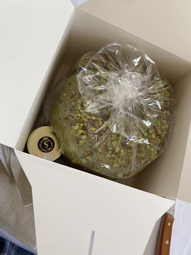 (panettone review) Love this bar’s pasticceria so I decided to get a pistachio panettone from them… in the box it came in there was a pistachio cream included… the panettone itself was amazing; fluffy, light and delicate. the pistachio glaze & pistachio crumbles on top were delicious and complimented the panettone perfectly. Whilst the pistachio cream was questionable to say the least, had little to no taste of pistachio… honestly I think it went bad. Absolutely ruined the panettone and had to end up throwing away the whole jar… overall I would recommend the panettone but honestly was quite disappointed from the quality...