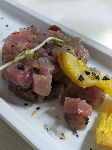 Non so davvero da dove cominciare, non so se partire dalla location che si trova in una piccola strada ai piedi di una scalinata che porta al castello di Castelsardo, non so se parlare del locale, arredato con gusto e dove si crea un’atmosfera unica, non so se parlare del proprietario Gianluca, della sua passione per la cucina e della persona davvero piacevole che è, non so se inizare dal personale, gentile, competente e cordiale, non so se parlare dei piatti e dei vini, semplicemente da volare via! Facciamo cosi, provo a fare un elenco: