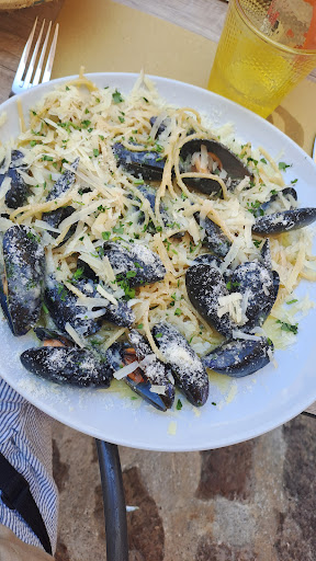 Al revisar la carta, nos sorprendió que ningún plato de pasta bajara de los 18 euros. Pedimos una fregola de marisco y unos espaguetis con mejillones; la cuenta de solo estos dos platos ascendió a 40 euros. En cuanto a la comida, la fregola resultó bastante grasienta y, en general, carente de la delicadeza y el equilibrio de sabor que se espera a ese precio.