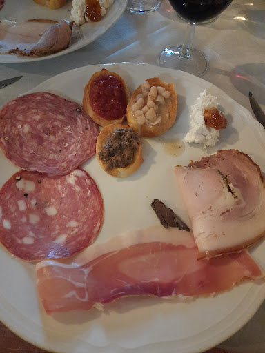 Simone, the owner and inventive chef, recommended a variety of antipasti, primi and secondi for our party of 10 today for lunch. We relaxed outside in the garden area and were able to spend a beautiful 4 hours proper family meal. The ravioli with pear sauce was favourite for most of us, surprisingly..who would have thought?!!??..plus he served up a mixed grill which had a local pork that was to die for!!!.. Sourced from a neighbour, who let's his breed run wild in the woods, which produces a flavour that is rich, with undertones of the nuts they forage on..and simply delicious .. Unforgettable!!!!.. And rarely found.. You will struggle to eat pork this amazing..we...