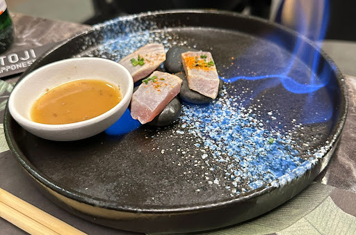 Siamo stati a cena in questo sushi, era da tanto tempo che non ci tornavamo e volevamo riprovarlo. L'ambiente è carino, il personale gentile, disponibile e veloce. I piatti arrivano subito, senza grandi attese. Il cibo é buono, ci sono varie pietanze tra cui scegliere. Noi abbiamo preso diverse cose, tra cui i ravioli, di tutti i tipi (consigliatissimi quelli di carne al vapore), bacchette con salmone e tartufo, Nigiri, Gunkan (quello con la zucchina buonissimo), Uramaki, Tempura e anche varie portate di crudo. Ci è piaciuto tutto, l'uniche cose che, ci sono piaciute meno, sono il sapore del riso dei Nigiri, che ci è sembrato troppo dolce. Probabilmente è lo stesso riso che viene usato per gli Uramaki, ma lì si notava meno. Poi questo è un nostro gusto, ma non per questo non vuol dire che il riso non sia buono, l'abbiamo mangiato comunque, però abbiamo preferito altro. E la tempura, era troppo unta e sapeva troppo di fritto. Comunque, nonostante tutto è stata una bella esperienza, ci siamo trovati bene e anche il cibo non è che non ci sia piaciuto! Potremmo anche...