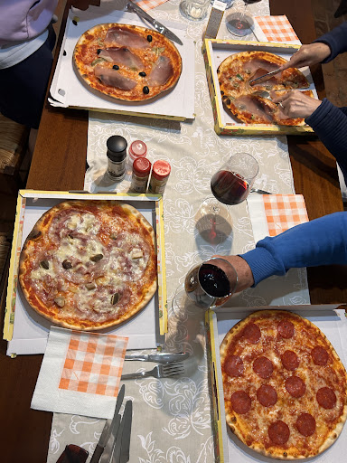 This place is the real deal. Even though we were about an hour too early after a loooong (10 hours) on the road, the waiter/owner was kind enough to say we could order some pizza to go. We are staying in Castiglione del Lago and it was recommended that we go here. Well, they did not disappoint! We enjoyed the: capricciosa, del re (omg so good), the diavola/salame piccante & the vegetariana with ham. All thin crusted and perfect in proportion. We also went with local wine: Corio Rosso del Umbria which went well...