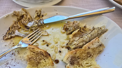 This was the worst food on our trip in Italy so far. The dish of the day in the promo photo looked great. In reality the perch must have died a horrible death. The fish was served cold, neither the scales nor bones were removed so you struggled to get enough meat to eat as it was all stuck together. So dry you could make it into a shoe or belt. The first pic was the dish. The second pic was what could not be eaten - most of it! Highly NOT recommended. A tourist trap with great views. Worst of all the waitress said this was the most popular...