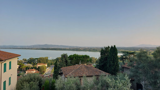 Read moreEsperienza da 110 e lode! Siamo arrivati senza prenotazione e senza pretese, al termine di una gita sul Trasimeno. Nonostante il ristorante fosse pieno sono riusciti a trovarci un tavolo, scusandosi perché il balcone panoramico (stupendo) era tutto occupato, ma ci hanno sistemato in un punto comunque molto carino. Personale gentilissimo (anche quando per sbaglio ho rovesciato un bicchiere d'acqua), attento, simpatico e preparato. Servizio sorprendentemente veloce. Ma la cosa che ci ha lasciati a bocca aperta è il cibo. Ci siamo già stupiti guardando il menù per la varietà della scelta che mette sicuramente tutti d'accordo, e quando abbiamo assaggiato i nostri piatti (tagliata, hamburger, pizza, patatine fritte e patate al forno) siamo rimasti senza parole. Qualità-prezzo assolutamente eccellente! Se posso fare un piccolo appunto, magari sarebbe gradito qualche punto luce in più perché l'atmosfera è molto suggestiva, ma quando arriva il buio trovo che l'illuminazione potrebbe essere leggermente più forte. Ma è appunto solo un piccolo suggerimento e un voler trovare il pelo dell'uovo, perché è stato tutto eccellente. Se tornerò in zona tornerò sicuramente anche a cena qui, e se abitassi più vicina tornerei...
