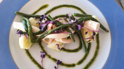 Read moreSono stato a pranzo due volte in questa struttura a fine giugno e ne sono rimasto piacevolmente sorpreso. La cucina è strepitosa. Lo chef ha una mano buona e si sente subito. Il menù non prevede moltissimi piatti ma se ne provate uno lo vorrete mangiare anche le volte successive. A me è accaduto con uno spaghetto alle vongole. Preso il primo giorno per andare su un piatto semplice e tranquillo mi sono ritrovato ad ordinarlo anche il giorno dopo. Gustoso, saporito e ben legato nulla da eccepire voto 10. Da provare veramente. Il primo giorno avevo ordinato un antipasto di polpo soffice con crema di patate fagiolini e base di pesto genovese. Piatto gustoso e ben abbinato. Mia moglie ha preso invece un salmone marinato con finocchi e lamponi. Piatto fresco e delicato accattivante in estate. Le porzioni giuste senza esagerare e permettono di deliziarsi con i piatti che seguiranno. Il secondo giorno abbiamo saltato gli antipasti per dedicarci alla frittura in tempura sia di pesce sia di verdure. La frittura era perfetta. Asciutta croccante e con gli ingredienti che la componevano salati al punto giusto. Una porzione per due è più che sufficiente può bastare. Pezzo per i due pranzi 50 euro il primo giorno e 54 euro il secondo giorno. Il personale è svelto gentile e cortese. Piacevole la musica in sottofondo, la vista mare a disposizione senza dimenticare il fresco del vento che in estate è una benedizione fidatevi. Io passerei ore in questa terrazza peccato averla a disposizione solo a pranzo! Locale consigliato promosso...