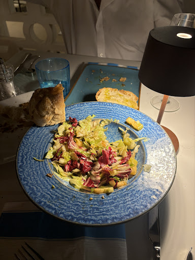 Una stella non basterebbe per esprimere a pieno la mia esperienza, ma partiamo dall’inizio. Io e il mio ragazzo eravamo partiti con l’idea di gustarci delle pizze con vista mare e proprio per questo ci siamo recati in questo posto. Ci fanno accomodare, (inutile dire che la location è incredibile) scannerizziamo i menù e notiamo che tutto c’è tranne che le pizze. Chiediamo informazioni e ci hanno detto che la pagina di Google non era stata aggiornata e vabbè… (SE VOLETE PIZZE NON AFFACCIATEVI NEMMENO). Il menù era esclusivamente a base di pesce, nessuna alternativa per chi non mangia pesce. Il bello però arriva adesso: ordiniamo due primi: raviolo con ricotta, menta, lime al gambero rosso dal valore di 28€. Ci arrivano i piatti e restiamo senza parole. Ci avevano messo 4 ravioloni con appena un cucchiaio di sugo e un gamberetto CRUDO (che perlopiù non era specificato nel menù) tagliato in tanti e piccoli pezzi. Per il prezzo chiesto sinceramente non ne valeva la pena, avevamo ancora fame e decidiamo di prendere un secondo. Chiediamo informazioni sull’orata (26€)e ci viene detto che loro servono il filetto dell’orata (cito le loro stesse parole: metà filetto dell’orata. Quindi porzione decisamente piccola). Diciamo che ci sembra improponibile offrire ai clienti un servizio del genere proprio perché i prezzi non erano così onesti, siamo anche noi del mestiere, e si sa che in queste località i prezzi sono più alti, ma qui c’è una differenza perché era puramente una FREGATURA. Continuando la nostra fantastica serata chiediamo un po’ di pane per fare delle bruschette e un’insalata, questi fuori menu’ sono venuti a costare ben 10€ l’uno. Il pane che poco prima ci aveva servito, l’avevano semplicemente tagliato e riscaldato. Avevamo chiesto delle bruschette, ma non c’erano nemmeno dei pomodori…e quindi olio e sale. L’insalata non era freschissima, così come il cetriolo che era stato conservato in frigo da un po’ (lo potete notare dal colore). L’unica cosa che si salvava era il vino. Peccato davvero per la location, ma come siete bravi a chiedere SOLDI per un servizio a dir poco scadente, dovete imparare anche ad essere meno sbruffoni quando vi si fanno notare determinate cose. Ah dimenticavo… totale 130€ per aver mangiato i due primi, vino, insalata, pane e l’ACQUA A...