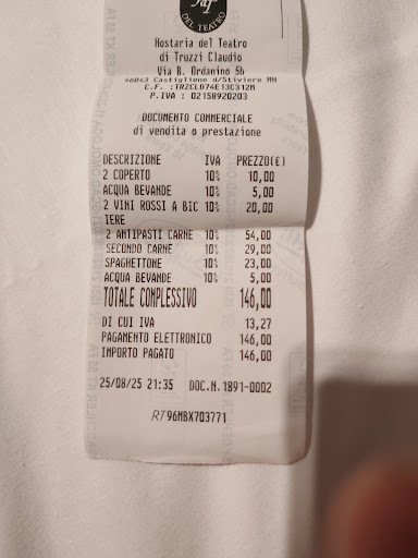 Read moreSono solito pranzare/cenare all’Hostaria del Teatro 2 o 3 volte a settimana da almeno 3 anni e per questo motivo credo di conoscere molto bene la cucina di Claudio Truzzi. Inutile dire che trovo la sua cucina geniale ed equilibrata con dei picchi di eccellenza; una cucina che non dimentica la tradizione, ne trae ispirazione per poi elevarla verso piatti dall’alto contenuto sensoriale. Materia prima eccellente e capacità di sfruttarla superiore. Vi invito a provare la tartara di tonno, il risotto stagionale di Claudio o il suo spaghettone Cavalieri, il luccio o la sua anguilla (pesce che mangio in soli 3 ristoranti in Italia) e vi basterà poco per realizzare che il rapporto qualità/prezzo dell’Hostaria è un regalo per chi approccia al ristorante. Non sono così avvezzo a fare recensioni, ma ne ho lette alcune recenti negative che assolutamente si discostano in modo netto dalla realtà dei fatti e per questo me ne dispiaccio. Un ultimo piccolo consiglio: date un’occhiata alla carta dei vini dell’Hostaria e lasciatevi consigliare da Claudio l’abbinamento giusto… …rimarrete positivamente...
