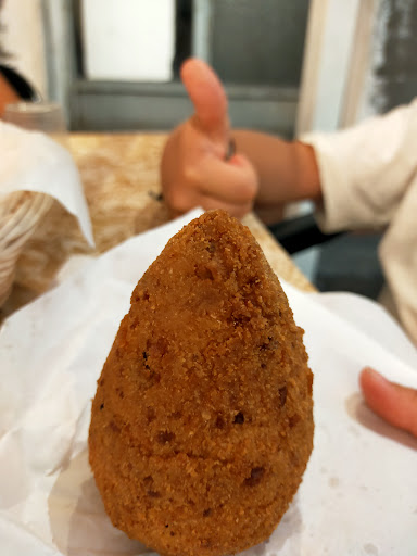 Definitely the best ice cream I had in a really long time (or ever). I had the tastes almond, pistacchio and chocolate. Especially, the almond ice cream was a dream with caramelized whole almonds. I also had a rice volcano there (arancino) and a calzone with ragù. It was still warm and so delicious. Also, it is inexpensive and can fill you up like a normal lunch. The young guys there were so nice and enjoyed telling me the story of the arancino. I'm not going to tell you, I don't want to spoil...