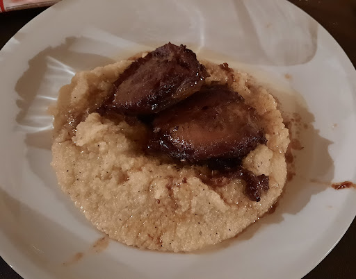 Read moreSe sei in zona e hai fame fermati, altrimenti tira diritto. Un antipasto di affettato in due( accettabile/buono) due primi maccheroncini al ferretto con ragù di asino( riscaldati)(che vergogna), un secondo guancialino(uno e basta) di maiale ( per chi è a dieta), un dolce(tre fettine di un salame dolce delle dimensioni di uno strolghino),due caffè,due bottiglie d'acqua, un grappino e mezzo litro di vino 60€. Relativamente poco, ma dall'altro punto di vista abbiamo speso troppo per quello che viene presentato nel piatto, soprattutto la qualità e la preparazione dei piatti. Mi spiace ma quel primo ha fatto veramente pena, di conseguenza ha appesantito la recensione. La ristorazione è un lavoro duro, ma hai 3 primi e tre secondi in lista menù ( se ti arriva completo) falli...